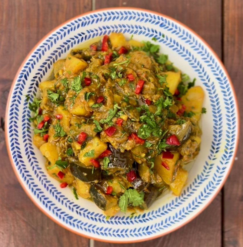 Aloo Baingan is a comforting Indian classic that brings together tender potatoes and melt-in-your-mouth eggplant, all cooked in a blend of warming spices. It’s a simple, rustic dish full of bold flavour and homely charm — perfect for when you want something hearty and satisfying.