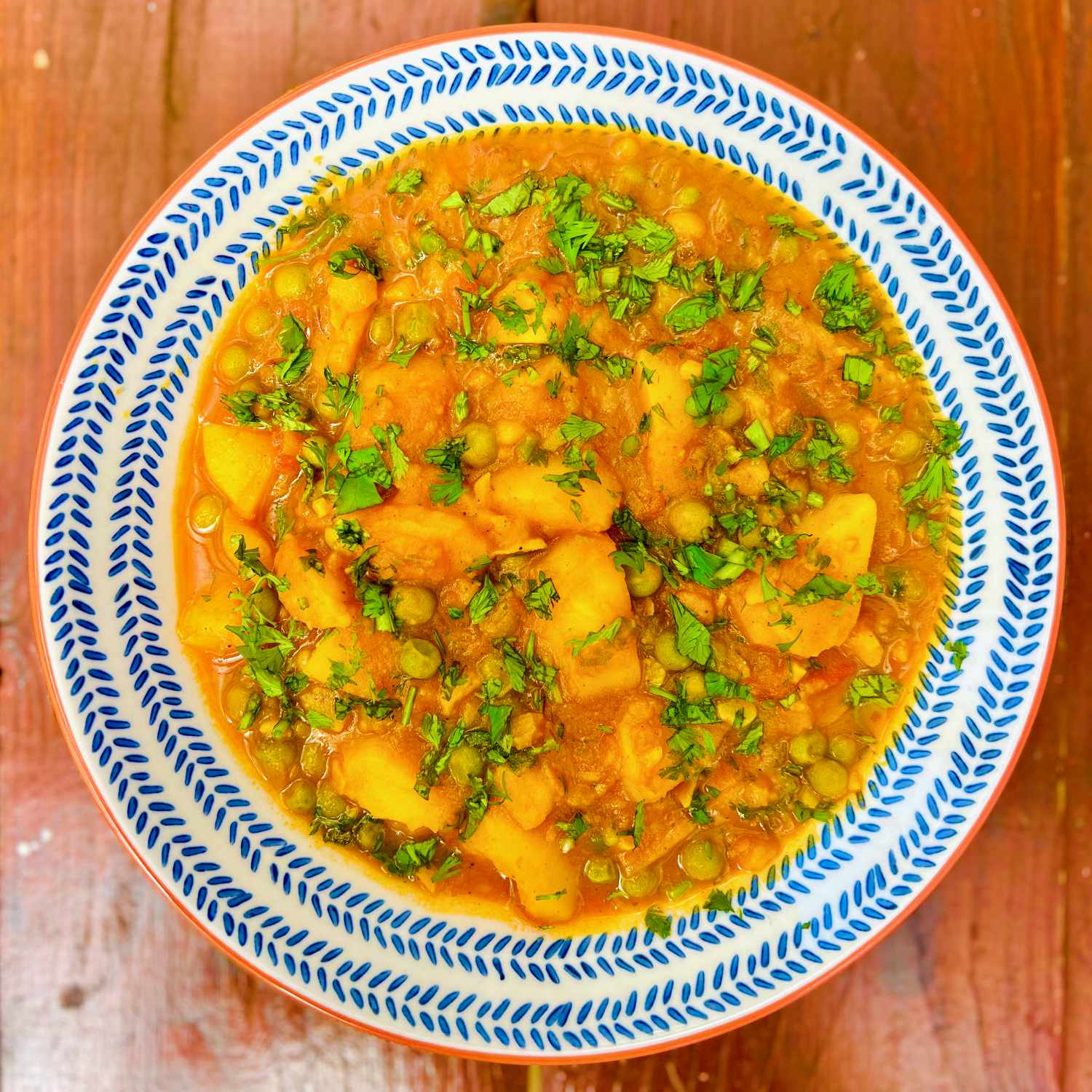 Aloo Matar is a simple, comforting Punjabi classic made with potatoes and peas in a lightly spiced curry. This version, inspired by my Aunty’s recipe, has a thinner gravy that lets the natural sweetness of the peas shine through. It’s wholesome, nostalgic, and full of home-cooked goodness — the kind of dish that warms both heart and belly.