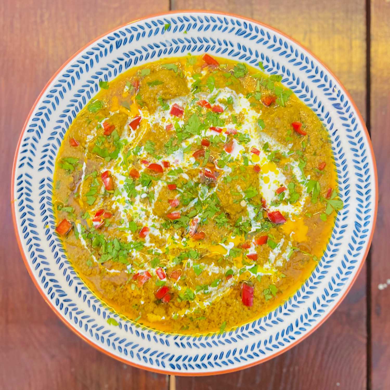 | Garnish the kofte with chopped coriander leaves, de-seeded red chillies and a drizzle of fresh single cream. Serve with Indian bread or rice. |