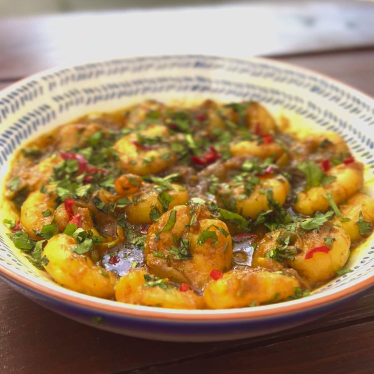 Garnish with fresh chopped coriander and a squeeze of lime. Serve with bread or rice.